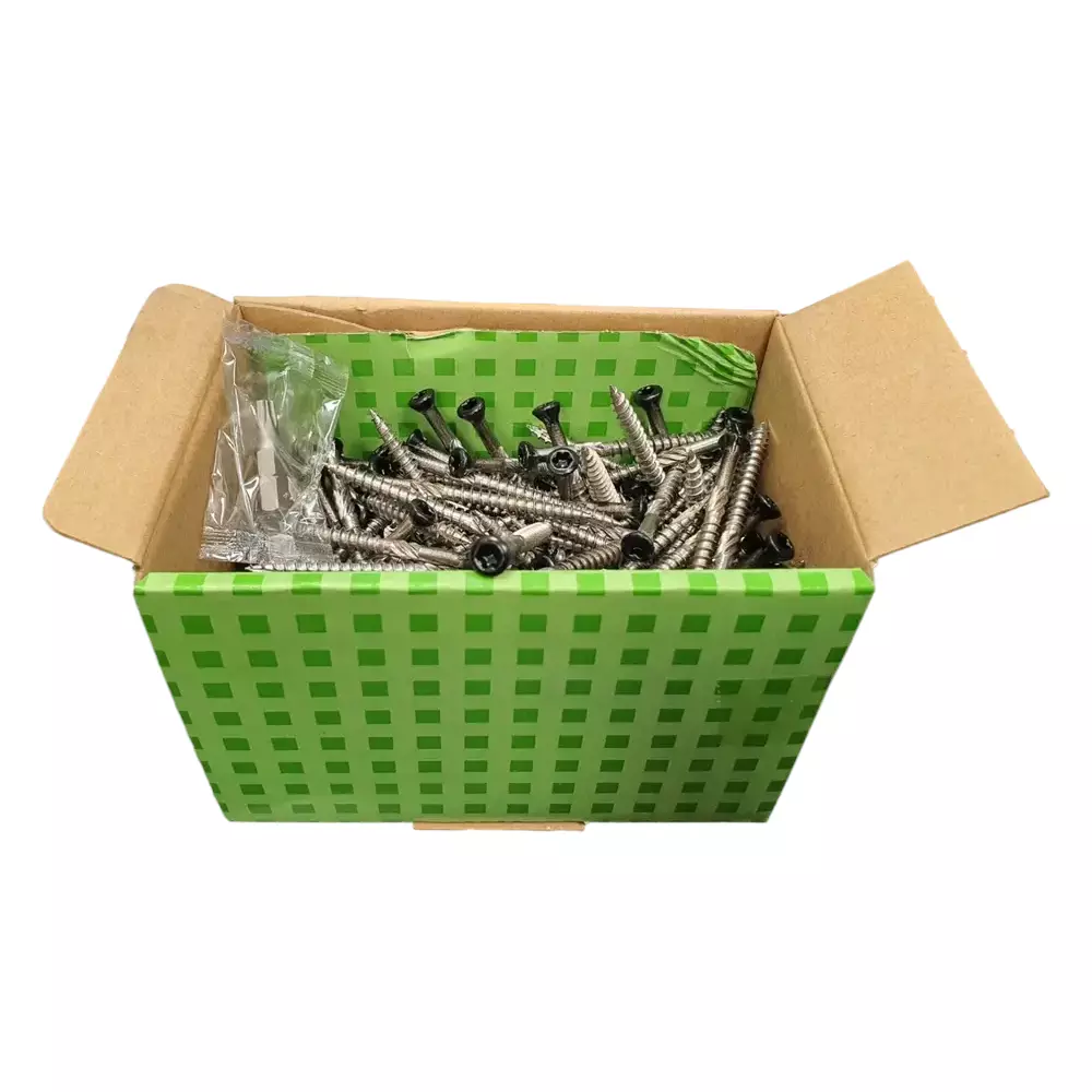 200 szt 4×45 Wkręt do twardego drewna z główką malowaną na czarno, tarasowo-elewacyjny + bit