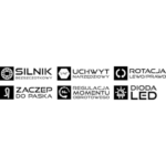 dodatkowe oświetlenie – urządzenie zostało wyposażone w trzy diody, których promień światła skierowany jest w stronę miejsca pracy, co ułatwia prowadzenie robót w trudno dostępnych przestrzeniach;