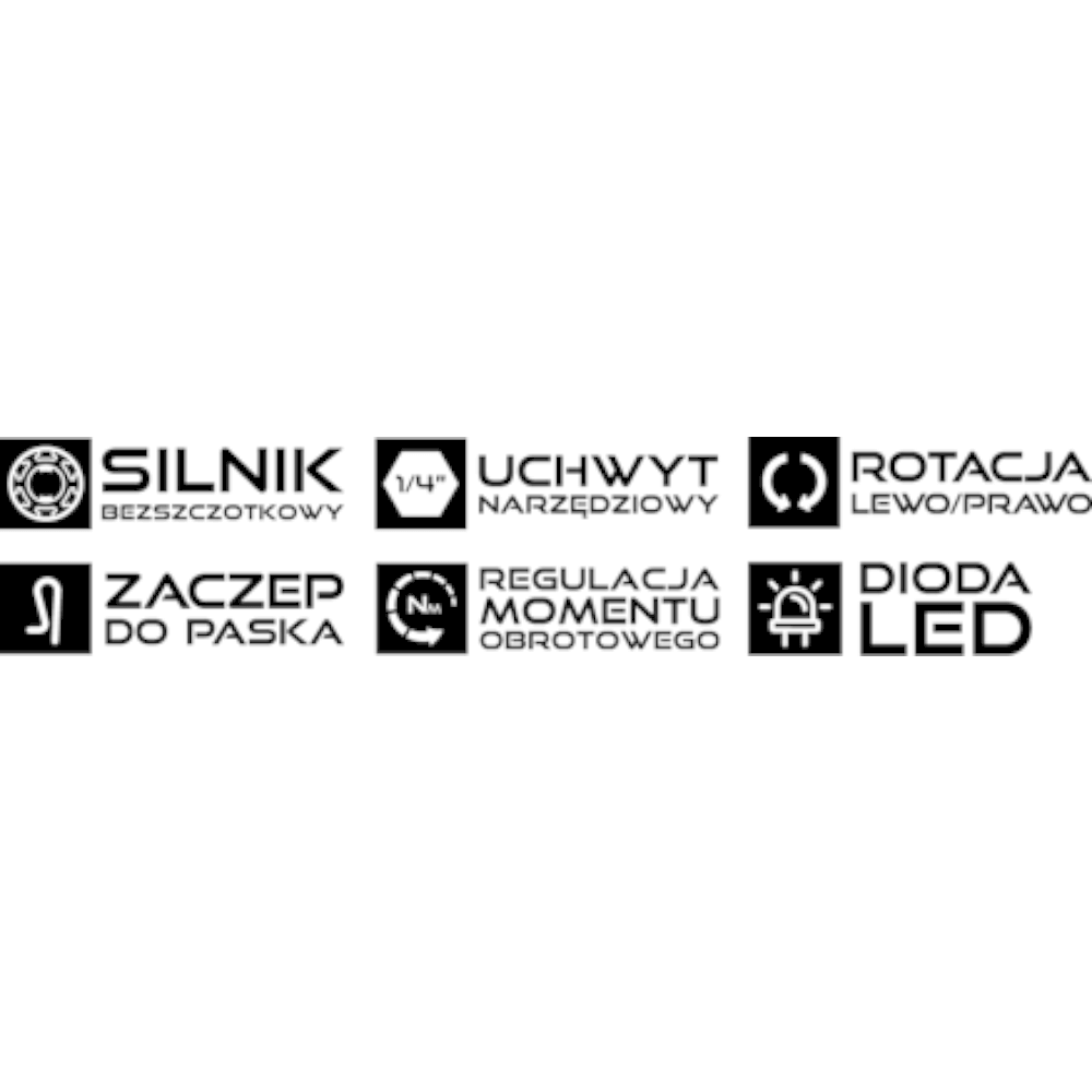Zakrętarka ma ćwierć calowy uchwyt narzędziowy typu HEX, którym można obsługiwać głowice robo cze, nasadki farmerskie lub inne akcesoria. Taka konstrukcja sprawdza się głównie przy bardziej precyzyjnych pracach warsztatowych lub przy robotach dekarskich. Przy pracy na wysokości przydaje się także poręczny uchwyt i niewielka waga narzędzia. Jest obsługiwane akumulatorem litowo-jonowym, a dzięki bezszczotkowej konstrukcji silnika, bateria wystarcza na długi czas.