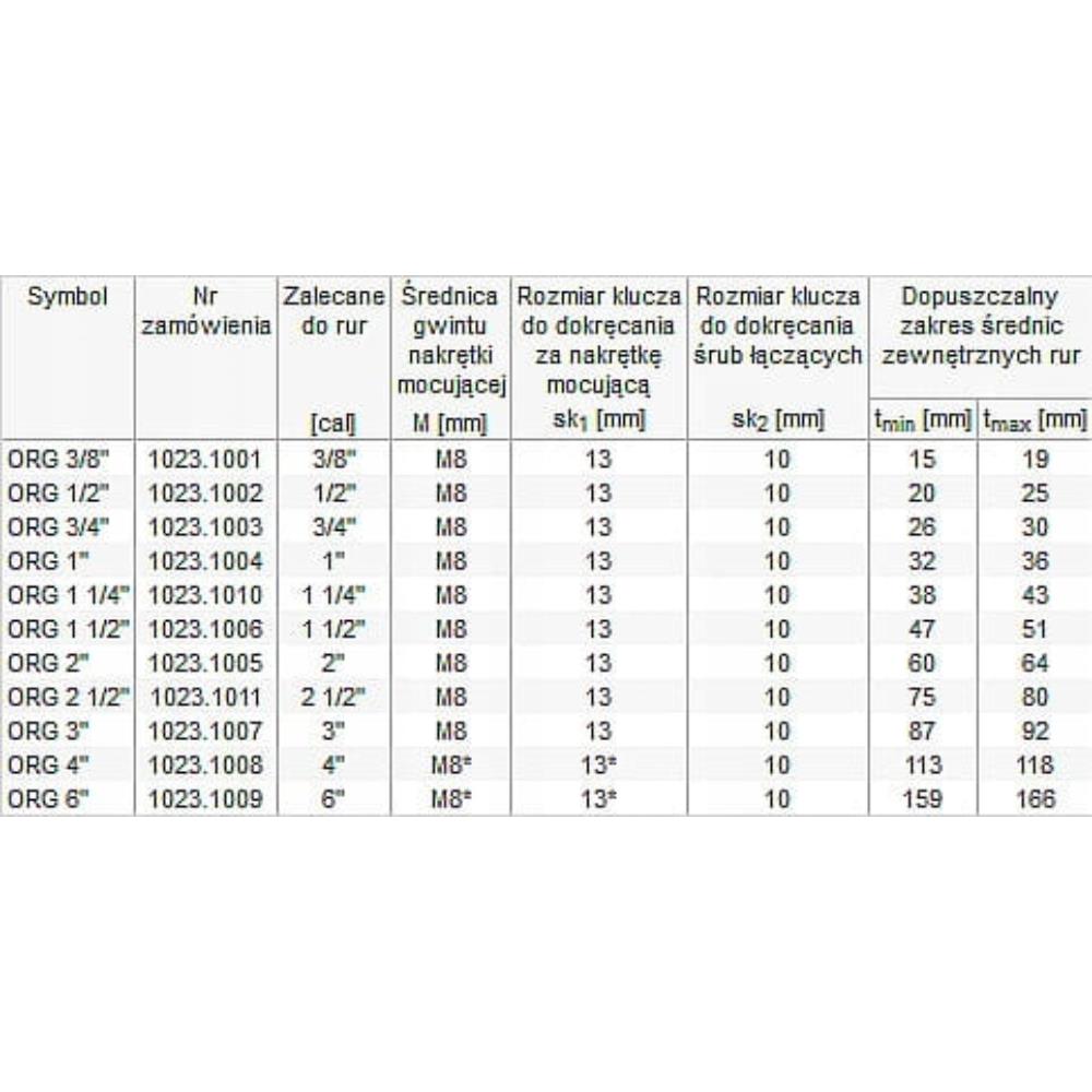 AORG (32-36) 1” Stalowa obejma do rur z uszczelką gumową i dyblem paczka 25szt
