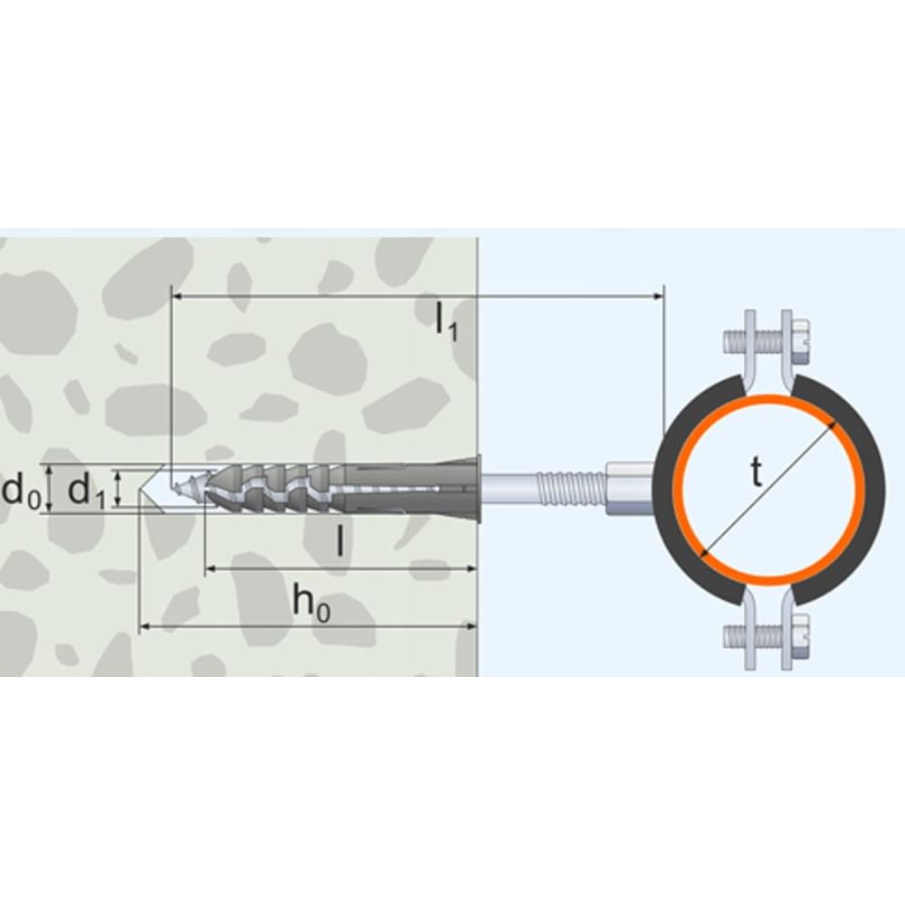 • Średnica koszulki dybla i otworu w podłożu d0: 10mm