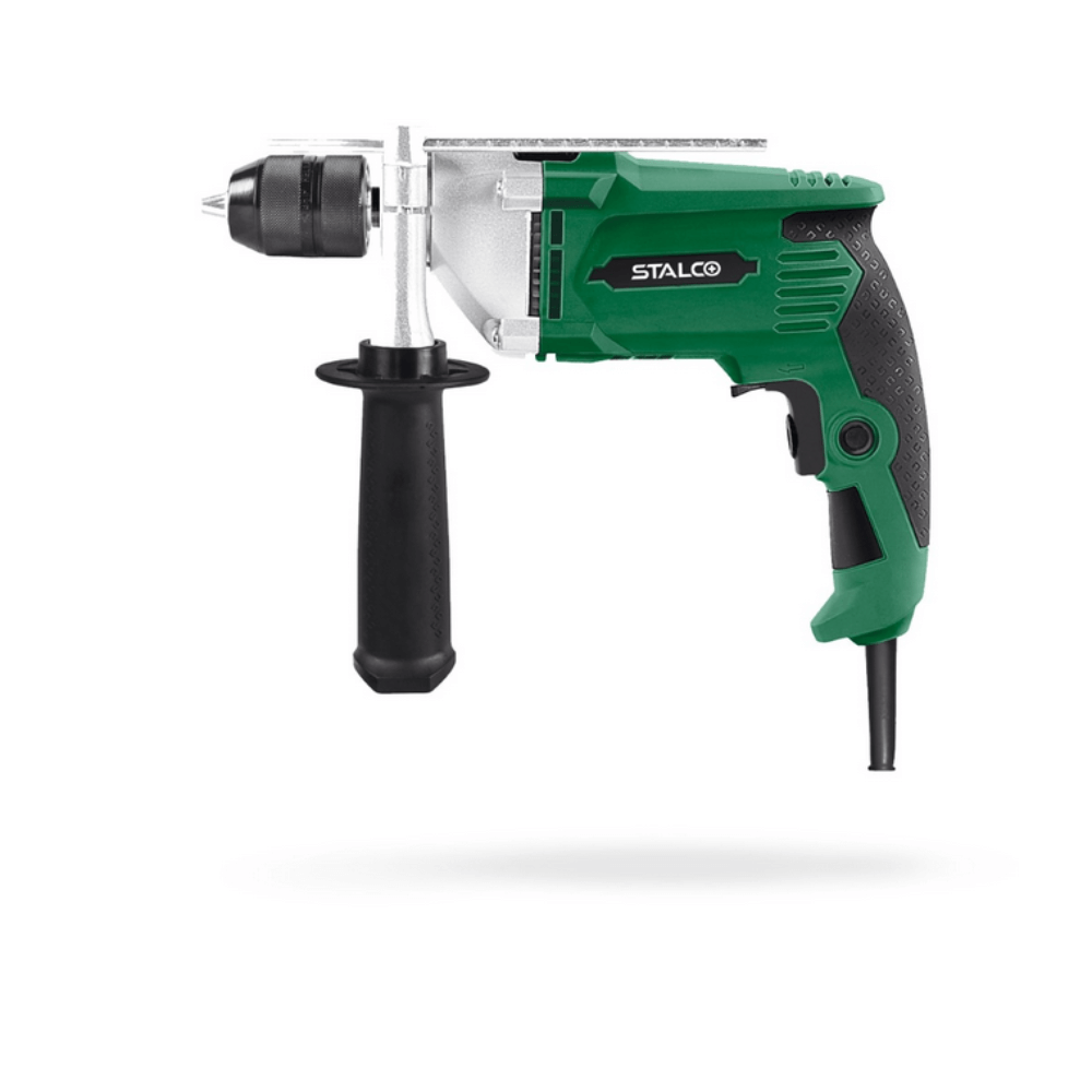 Funkcjonalna wiertarka udarowa IDS16KVS STALCO to narzędzie przydatne w czasie prac remontowych i budowlanych. Jest przeznaczona do wiercenia w różnych materiałach budowlanych, a przy pracy z drewnem może obsługiwać wiertła o średnicy nawet 30 mm. Dysponuje silnikiem o mocy 810 W, co daje bardzo duże możliwości przy wierceniu, a także montażu wkrętów.Uchwyt wiertarski zapewnia pewne pochwycenie akcesoriów wyposażonych w uchwyt o średnicy od 1,5 do 13 mm. Prędkość obrotowa na poziomie 2800 obr/min pozwala na szybkie i dokładne wykonywanie otworów. Za trwałość w warunkach placu budowy odpowiada lekka i wytrzymała obudowa.Do charakterystycznych cech tego narzędzia należą uniwersalne zastosowanie – moc silnika, niewielka waga, przełącznik zmiany obrotów i możliwość montażu dowolnych akcesoriów o okrągłych trzpieniach pozwalają zastosować narzędzie przy wielu różnorodnych pracach;łatwa wymiana akcesoriów roboczych – uchwyt wiertarski do obsługi nie wymaga kluczyka, dlatego wymiana akcesoriów roboczych przebiega szybko;blokada włącznika – w czasie pracy można wyregulować prędkość obrotówi zablokować włącznik, dzięki czemu narzędzie będzie obracało się z jednostajną prędkością.W zestawie: dodatkowy uchwyt i ogranicznik głębokości wiercenia.