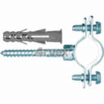 – obejma do rur z dyblem stalowa obejma zaciskowa do rur bez uszczelki, komplet z wkrętem dwugwintowym i kołkiem rozporowym, wzmocniona konstrukcja skręcana dwiema śrubami, gniazdo z gwintem metrycznym M8