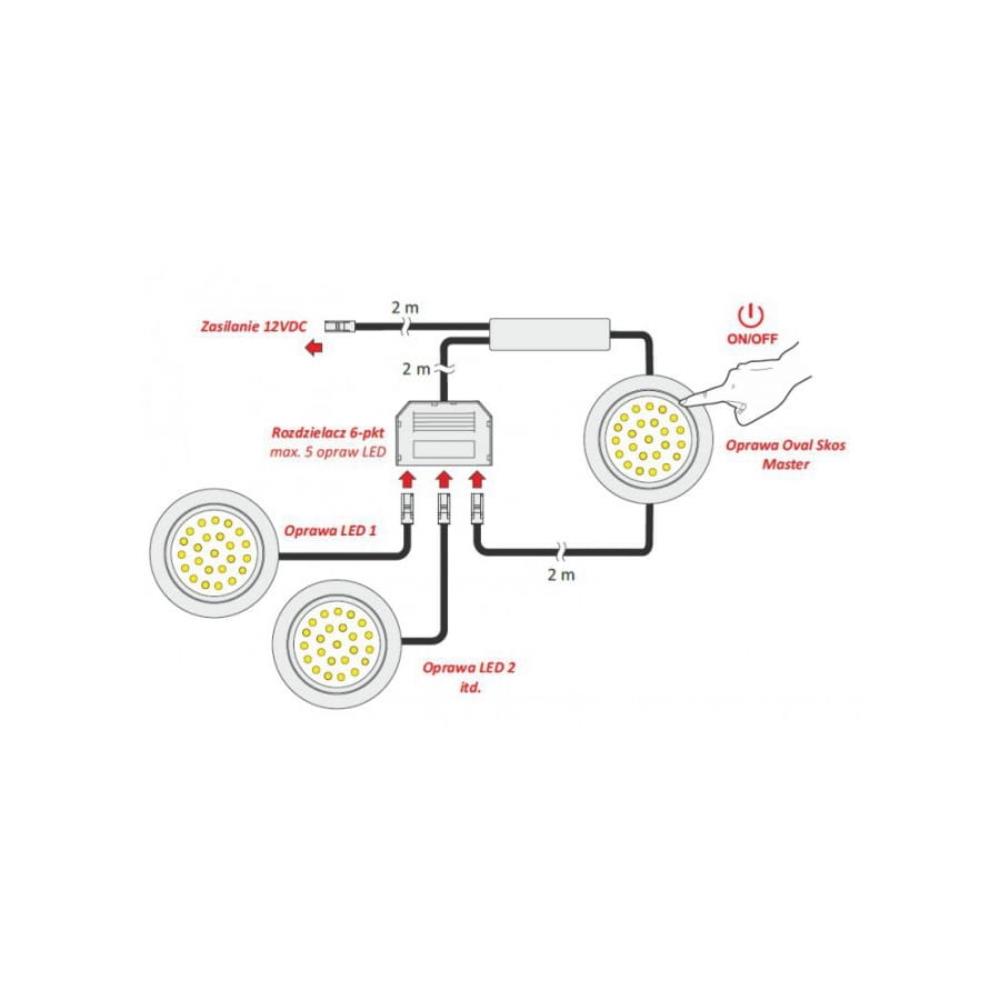 OVAL SKOS MASTER zawiera 24 wbudowane diody LED o łącznej mocy 2W. Gwarantują one długą żywotność i niskie koszty eksploatacji. Oprawa posiada przewód o długości 2 m z MINI-KONEKTOREM ułatwiającym podłączenie oświetlenia do zasilacza LED.