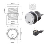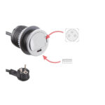 Urządzenie przeznaczone jest do montażu w blatach i stołach. Posiada dodatkową pokrywę chroniącą gniazdo sieciowe i port ładowarki USB oraz przewód o długości 1,8 mm zakończony wtyczką.
