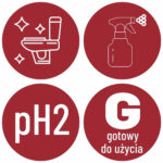 | Zastosowanie | mycie ściany i podłóg w toalecie, pryszniców, armatury, mycie wanien i brodzików, usuwanie rdzawych i wapiennych zacieków |