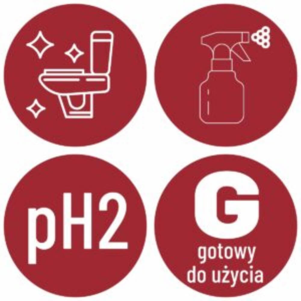 | Zastosowanie | mycie ściany i podłóg w toalecie, pryszniców, armatury, mycie wanien i brodzików, usuwanie rdzawych i wapiennych zacieków |