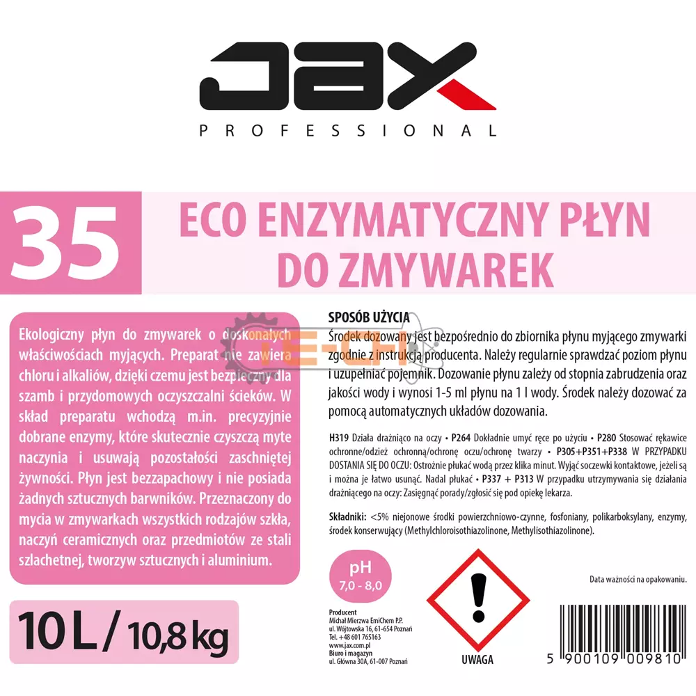 JAX35 10l ENZYMATYCZNY PŁYN DO ZMYWAREK EKOLOGICZNY