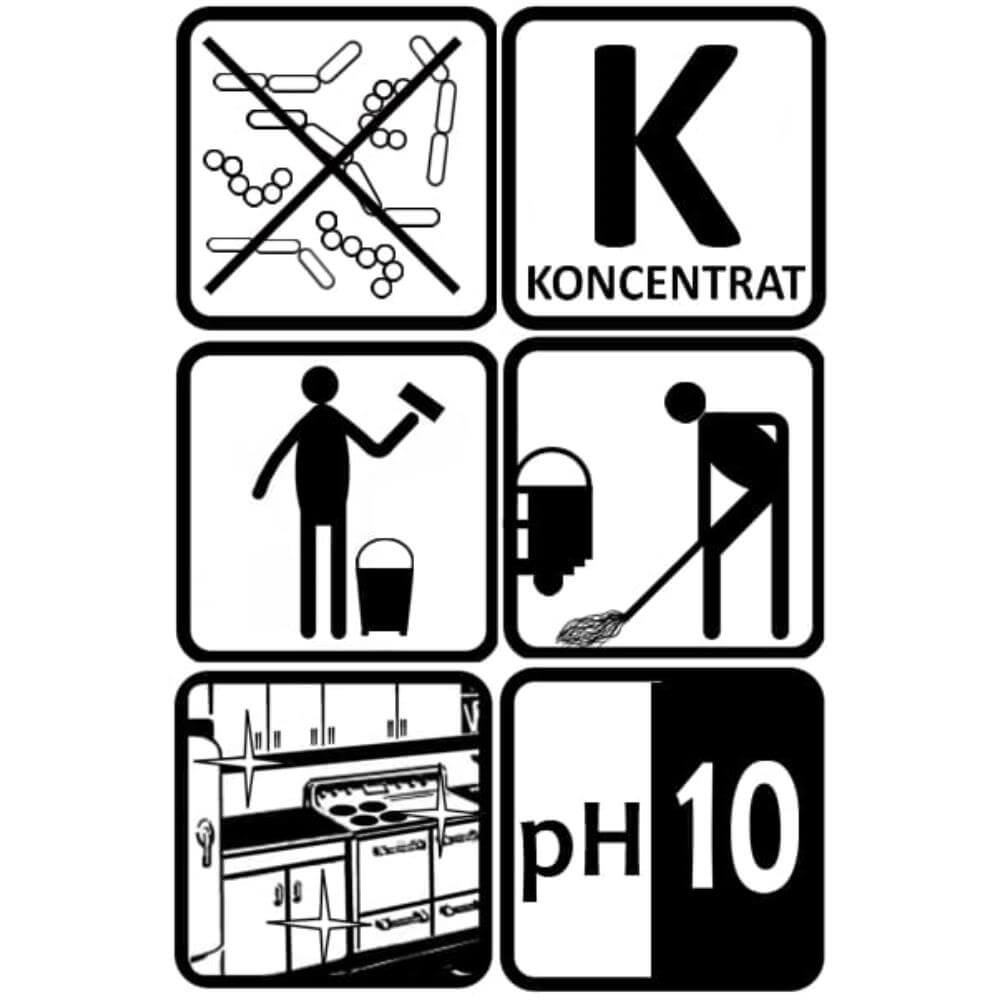 - pH koncentratu 10,0 – 10,5 (pH 1 % roztworu: ok. 8-9)