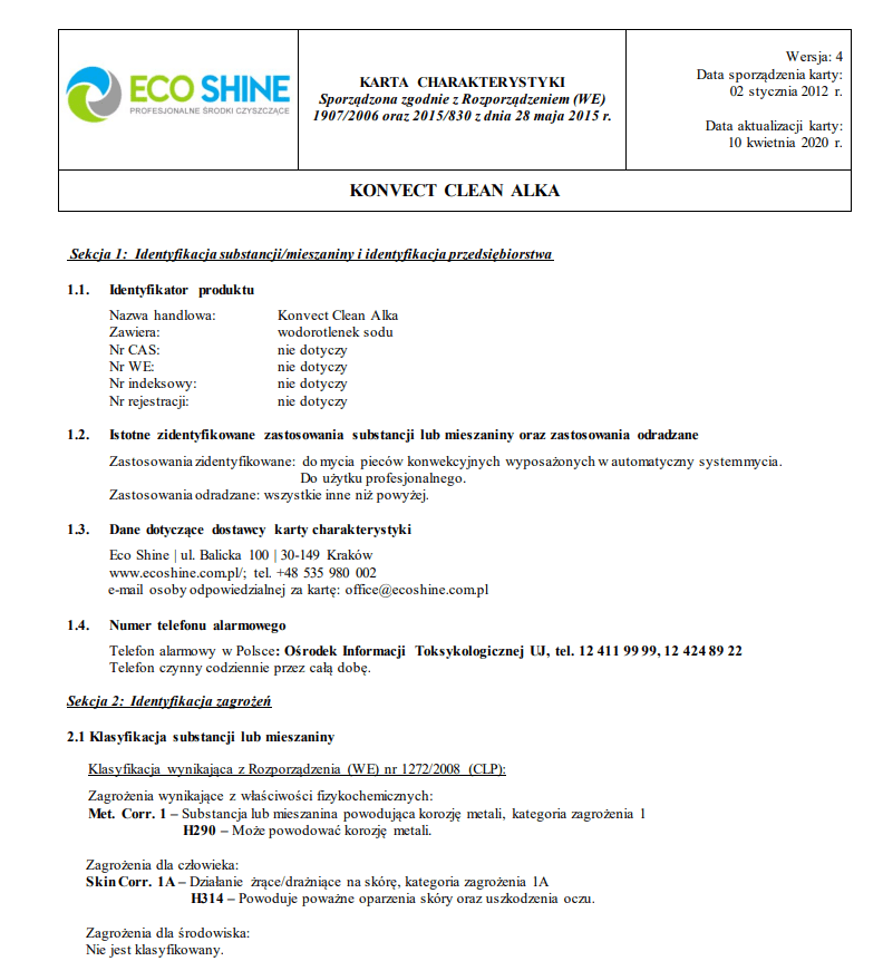 Dokument koncentruje się wyłącznie na bezpieczeństwie użytkowania oraz wpływie substancji na zdrowie i środowisko.