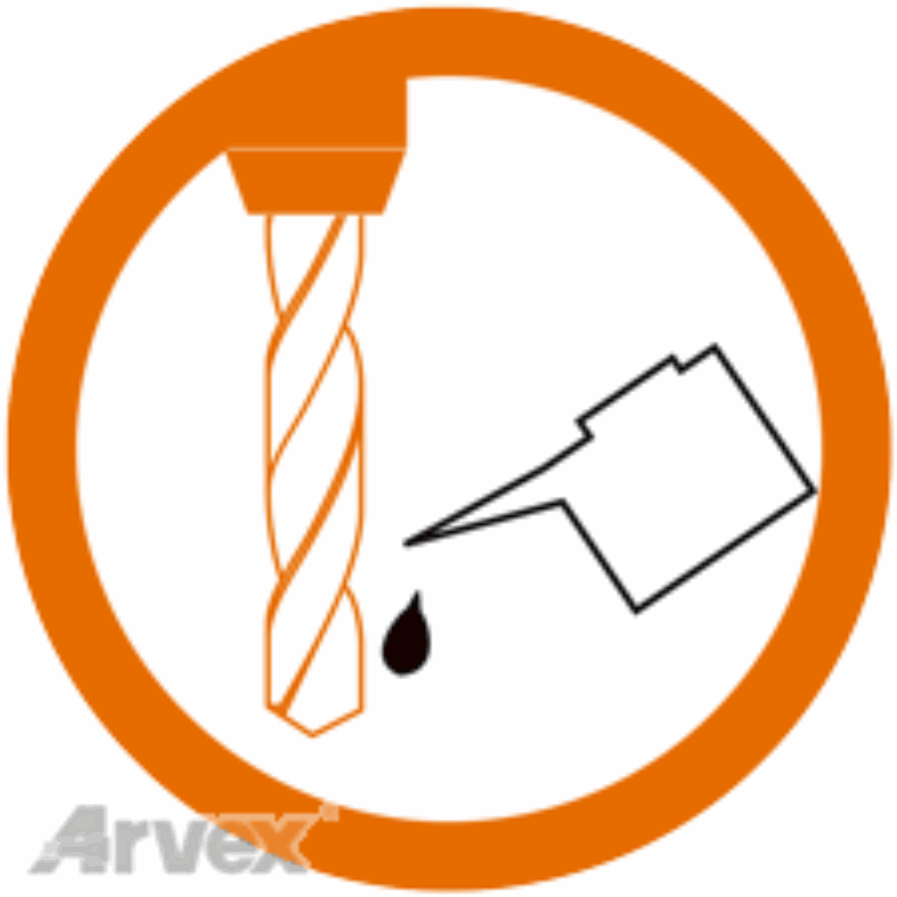 | Podczas wiercenia należy pamiętać o regularnym stosowaniu odpowiedniego chłodzenia/oliwienia wiertła. Dzięki temu żywotność wiertła oraz prędkość wiercenia zwiększają się kilkukrotnie. |