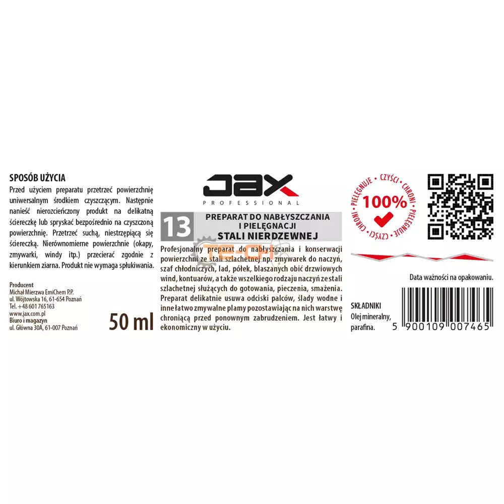 JAX PROFESSIONAL 13 – PREPARAT DO NABŁYSZCZANIA I PIELĘGNACJI STALI NIERDZEWNEJ URZĄDZEŃ I MASZYN ZE STALI NIERDZEWNEJ, MEBLI WYKONANYCH ZE STALI NIERDZEWNEJ, DO LAD, SZAF CHŁODNICZYCH