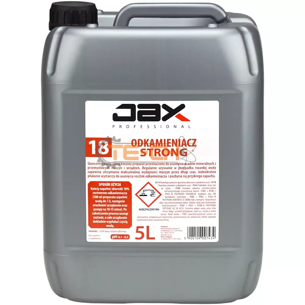 JAX PROFESSIONAL 18 – ODKAMIENIACZ STRONG DO USUWANIA OSADÓW MINERALNYCH Z MASZYN I URZĄDZEŃ PRZEMYSŁOWYCH, DO ODKAMIENIANIA