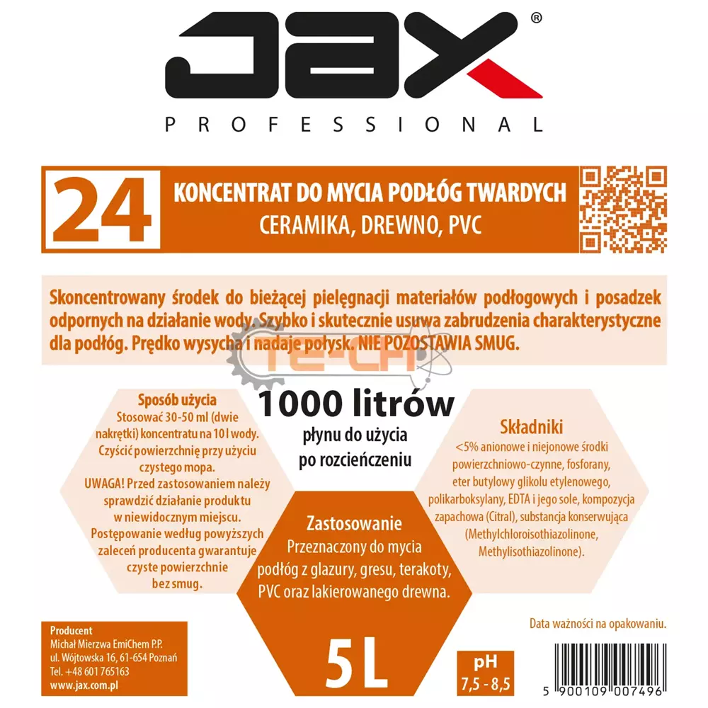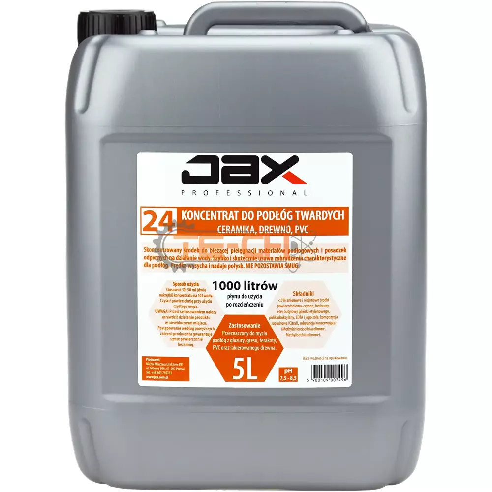 JAX PROFESSIONAL 24 – PŁYN DO MYCIA PODŁÓG TWARDYCH CERAMIKA, DREWNO, PVC, DO MYCIA GRESU, TERAKOTY, PVC, LAKIEROWANEGO DREWNA DO MYCIA ŚCIAN, MEBLI, DRZWI