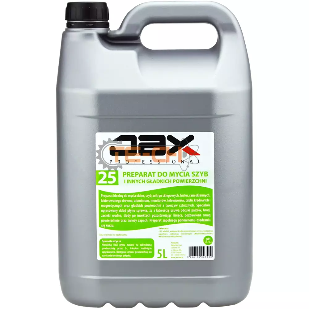 JAX PROFESSIONAL 25 – PŁYN DO MYCIA SZYB I INNYCH GŁADKICH POWIERZCHNI ŚRODEK DO MYCIA OKIEN, SZYB,SZKŁA, LUSTER, DO CZYSZCZENIA ALUMINIUM, CZYSZCZENIA MONITORÓW, TELEWIZORÓW, LAKIEROWANEGO DREWNA, USUWA ODCISKI ŚLADY PALCÓW