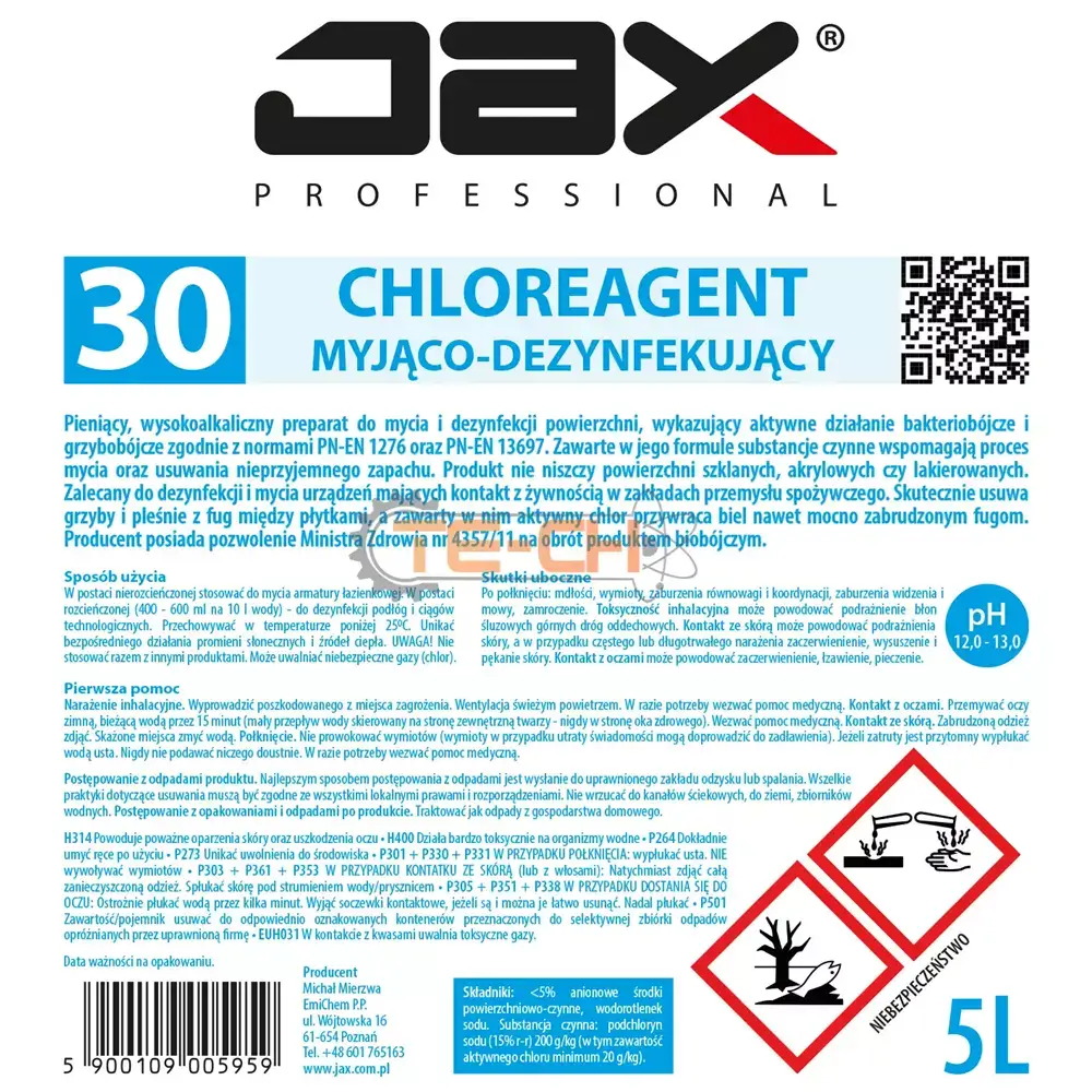 JAX PROFESSIONAL 30 CHLOREAGENT MYJĄCO-DEZYNFEKUJĄCY