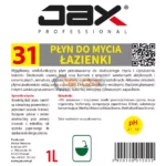 JAX PROFESSIONAL 31 – PŁYN DO MYCIA I PIELĘGNACJI ŁAZIENKI USUWA OSADY Z MYDŁA I KAMIENIA, ZAPOBIEGA OSADZANIU SIĘ ZABRUDZEŃ, DO KABIN PRYSZNICOWYCH, BATERII, GLAZURY, CERAMIKI, TERAKOTY I ALUMINIUM