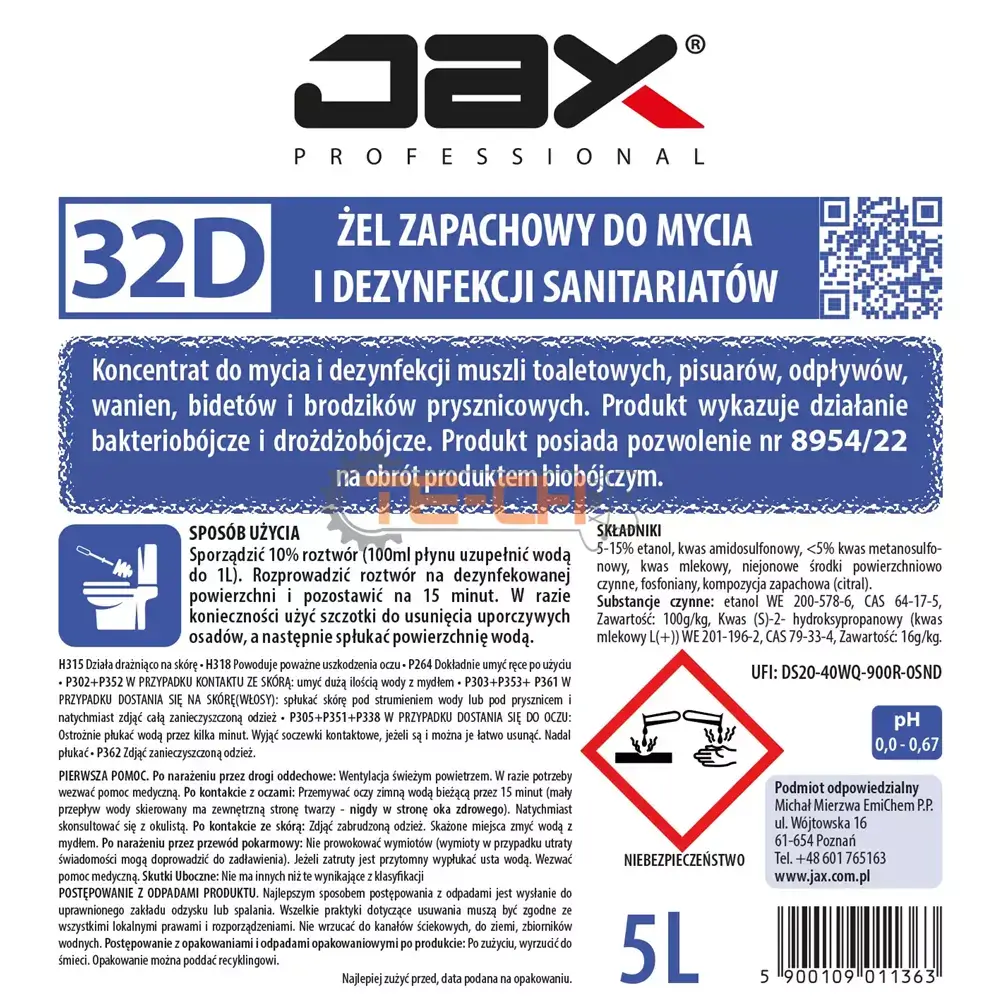 JAX PROFESSIONAL 32D – ŻEL ZAPACHOWY DO MYCIA I DEZYNFEKCJI SANITARIATÓW