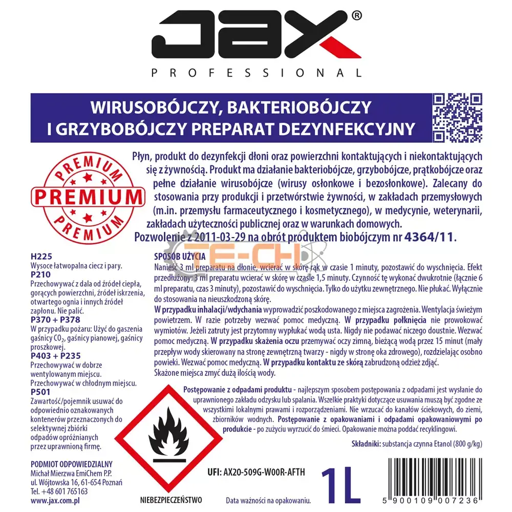 JAX34 PREMIUM WIRUSOBÓJCZY, BAKTERIOBÓJCZY I GRZYBOBÓJCZY PREPARAT DEZYNFEKCYJNY