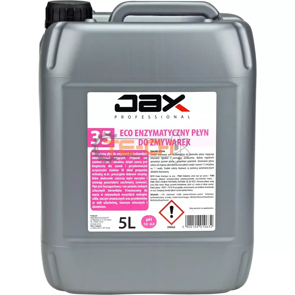 JAX PROFESSIONAL 35 – ECO ENZYMATYCZNY PŁYN DO ZMYWAREK DO MYCIA SZKŁA, NACZYŃ CERAMICZNYCH, MYCIA PRZEDMIOTÓW ZE STALI SZLACHETNEJ ALUMINIUM I TWORZYW SZTUCZNYCH