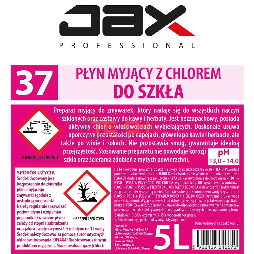 JAX PROFESSIONAL 37 – PŁYN Z CHLOREM DO MYCIA SZKŁA DO ZMYWANIA SZKLANEJ ZASTAWY DO KAWY, DO HERBATY, ZMYWA OSADY PO WINIE, SOKU