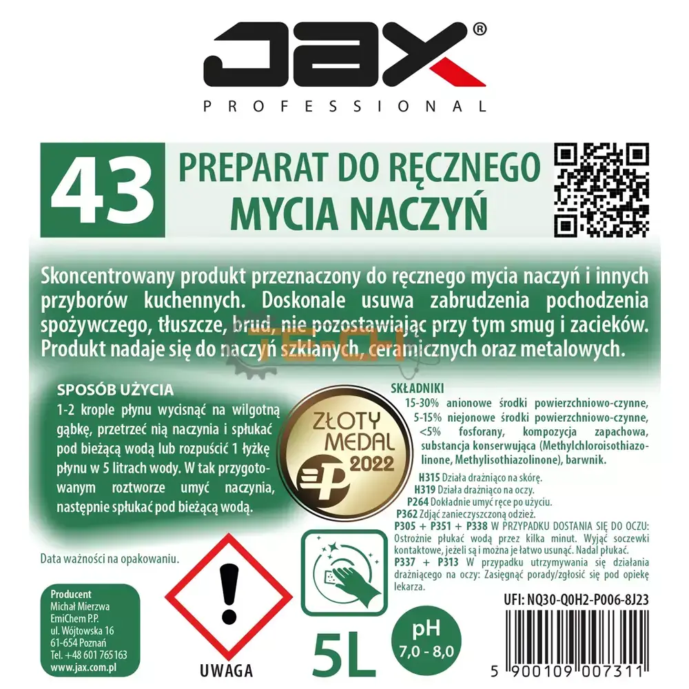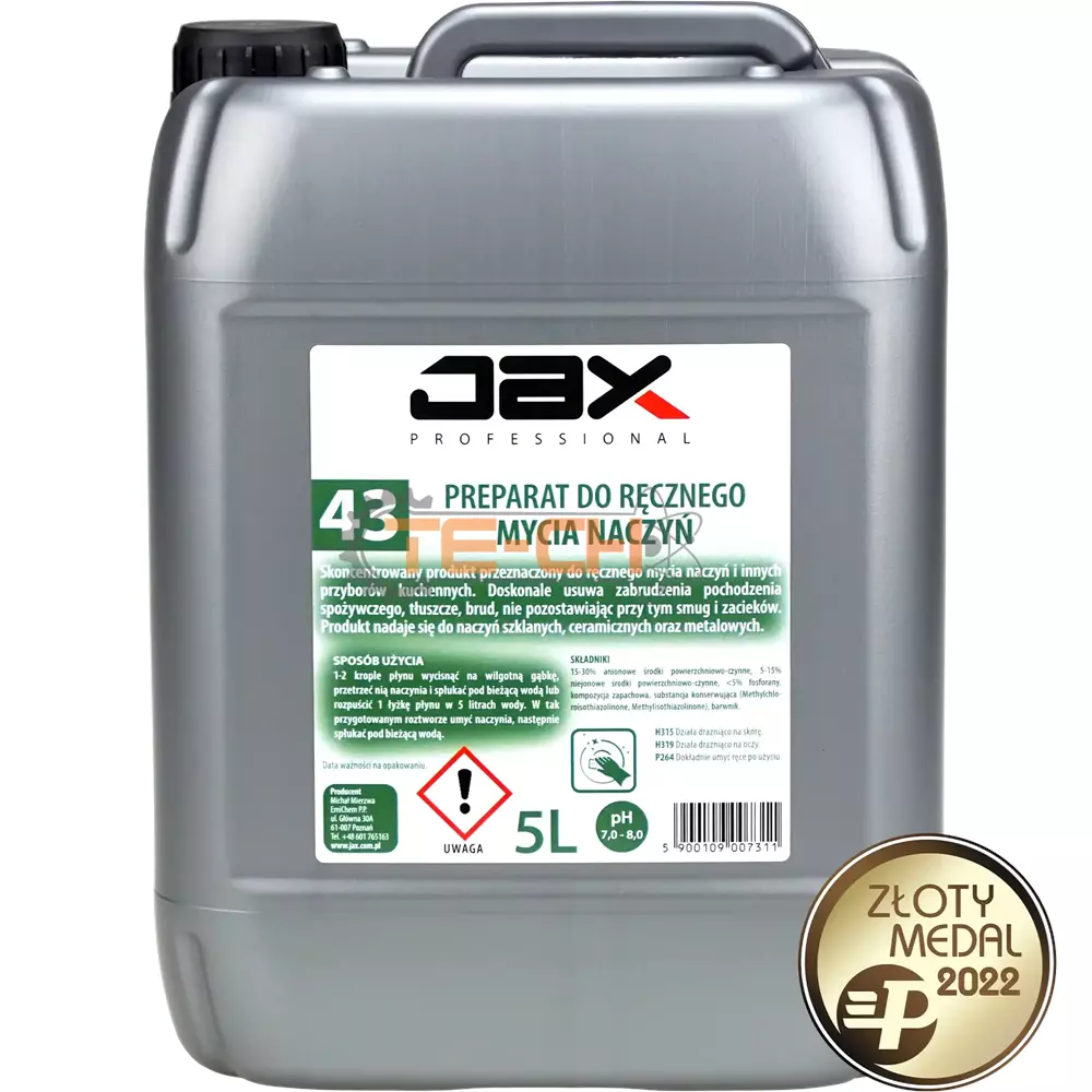 JAX PROFESSIONAL 43 – PŁYN DO RĘCZNEGO MYCIA NACZYŃ SZKLANYCH, CERAMICZNYCH, PLASTIKOWYCH, METALOWYCH