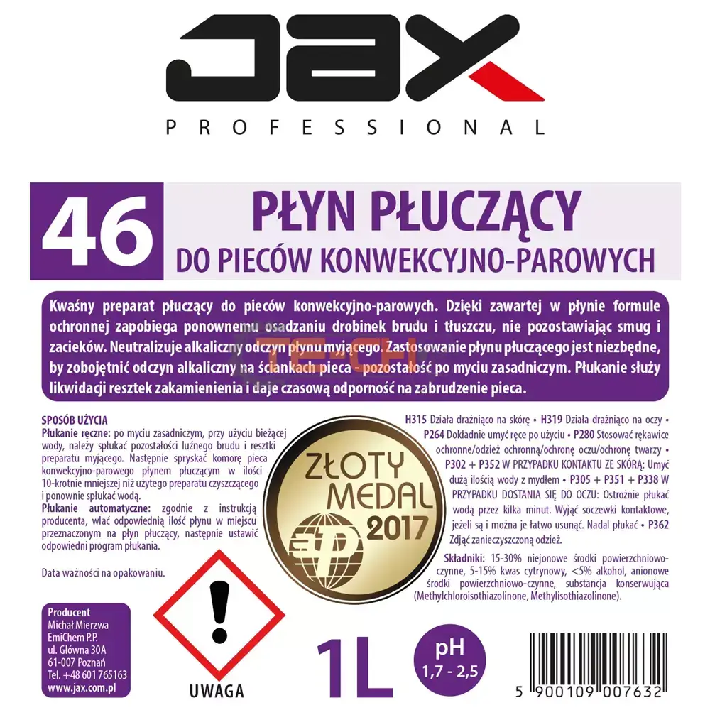 JAX PROFESSIONAL 46 – PŁYN DO PŁUKANIA PIECÓW KONWEKCYJNO-PAROWYCH