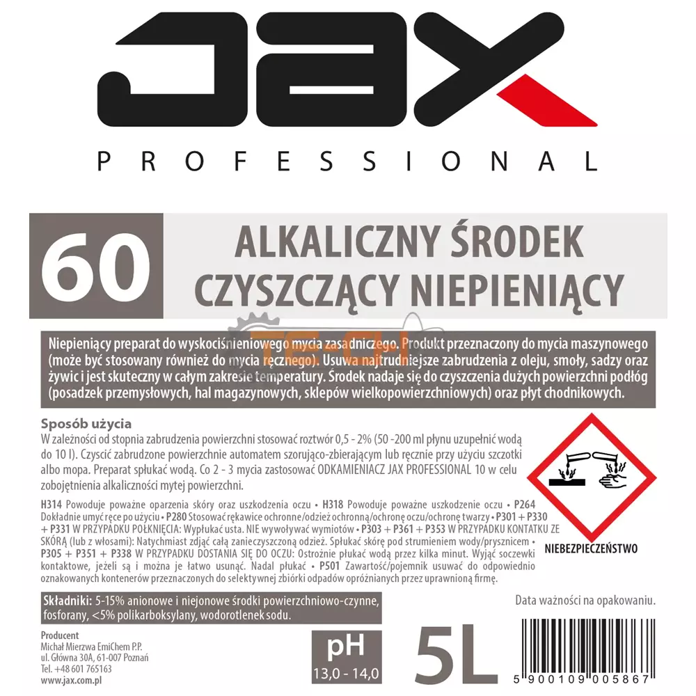 JAX PROFESSIONAL 60 – ALKALICZNY ŚRODEK CZYSZCZĄCY NIEPIENIĄCY DO CZYSZCZENIA DUŻYCH POWIERZCHNI PODŁÓG, DO POSADZEK PRZEMYSŁOWYCH, HAL MAGAZYNOWYCH, DO SKLEPÓW WIELKOPOWIERZCHNIOWYCH, DO PŁYT CHODNIKOWYCH