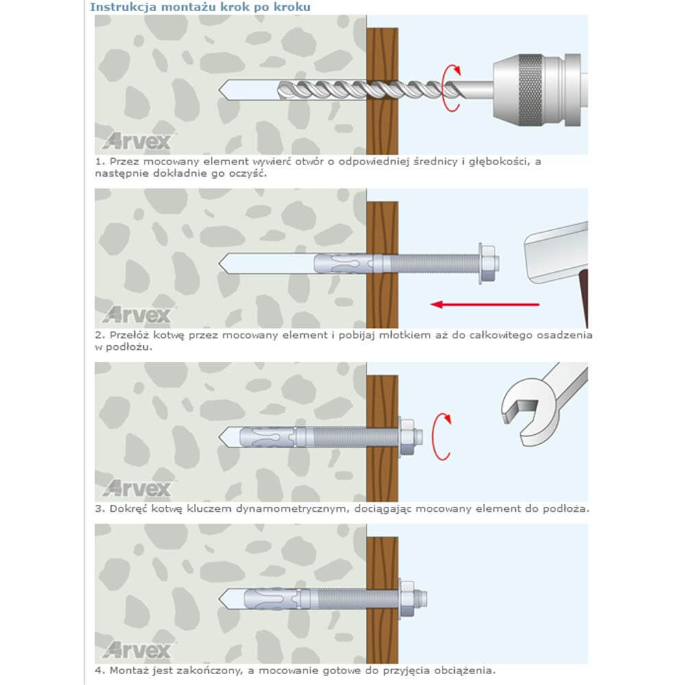 ✅ średnica trzpienia gwintowanego jest równocześnie średnicą kotwy – zdecydowanie większa wytrzymałość w porównaniu z kotwami tulejowymi o tych samych rozmiarach,