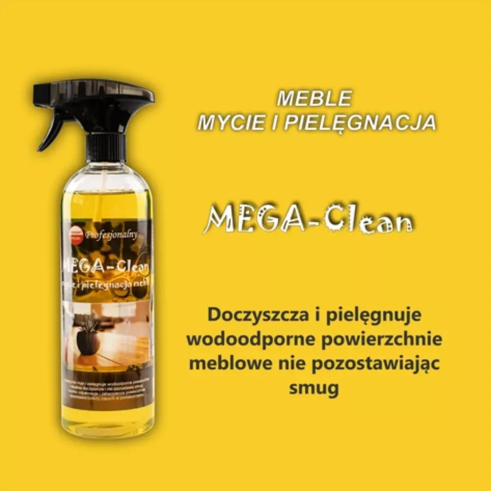 Następnie przystąp do odświeżania i pielęgnacji mebli przy użyciu naszego wyjątkowego preparatu – MEGA-CLEAN 750ml. Jego delikatna, a jednocześnie skuteczna formuła usuwa zabrudzenia i pozostawia powierzchnie mebli czyste, promienne i odnowione. Przywróć im pierwotny blask i uczucie świeżości.