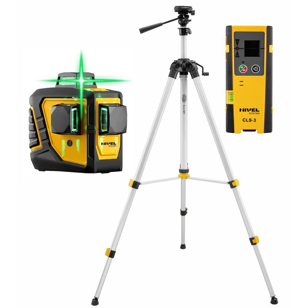 Niwelator laser krzyżowy zielony NIVEL CL3D 3 płaszczyzny plus statyw i czujnik
