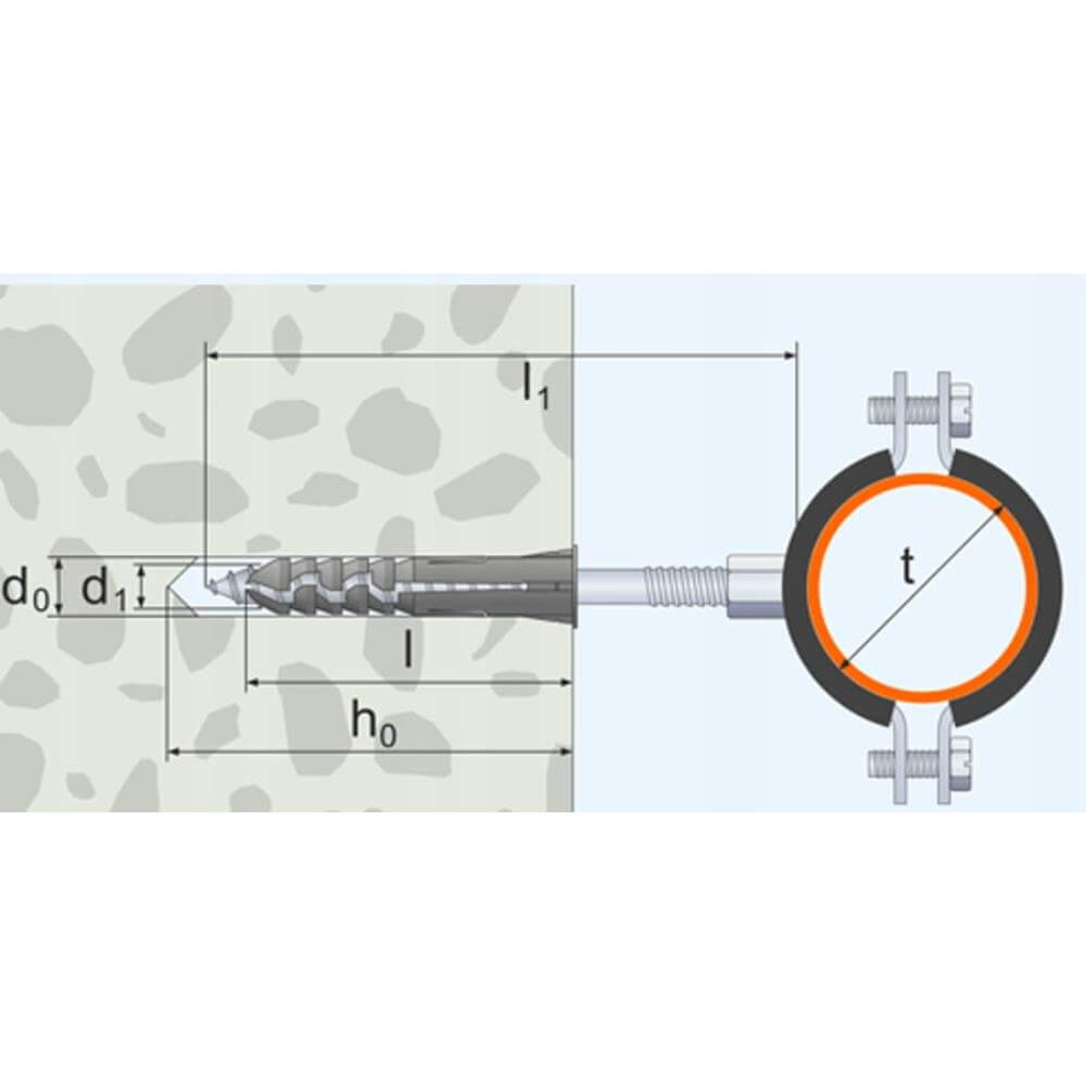- Średnica koszulki dybla i otworu w podłożu d0: 10mm