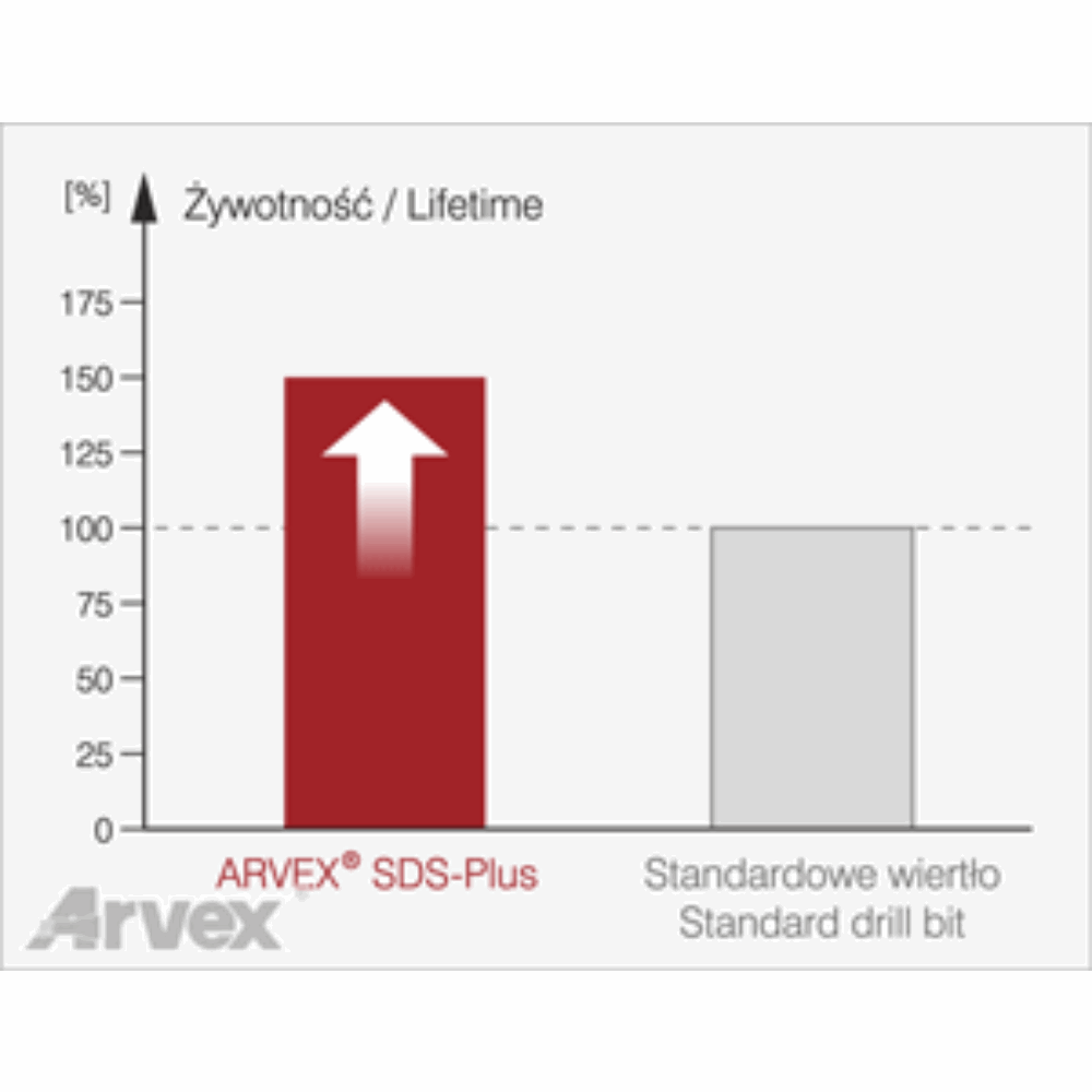 Zdecydowane podniesienie standardu w zakresie prędkości wiercenia oraz żywotności wiertła sprawia, że SDS-Plus firmy ARVEX® znacząco obniża koszt wykonania pojedynczego otworu.
