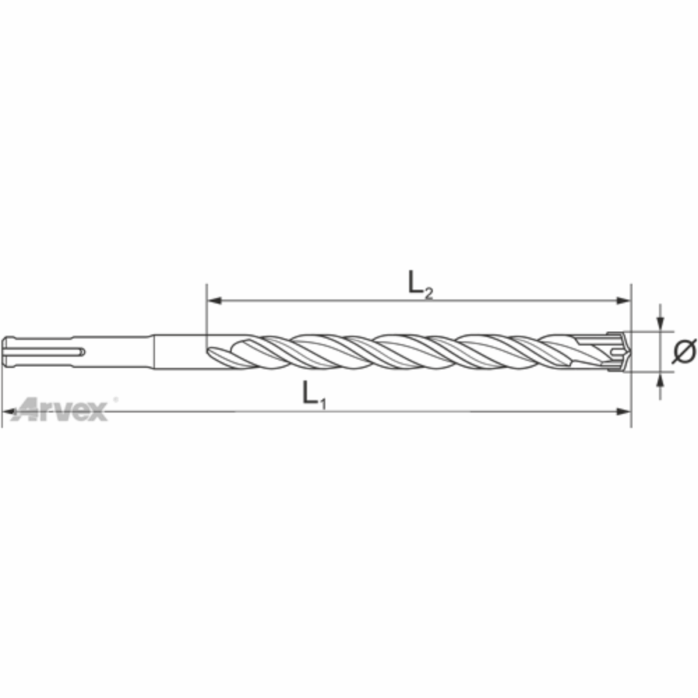 Wiertło z uchwytem SDS-Plus do stosowania z wiertarkami udarowymi o wadze od 2 kg do 4 kg.