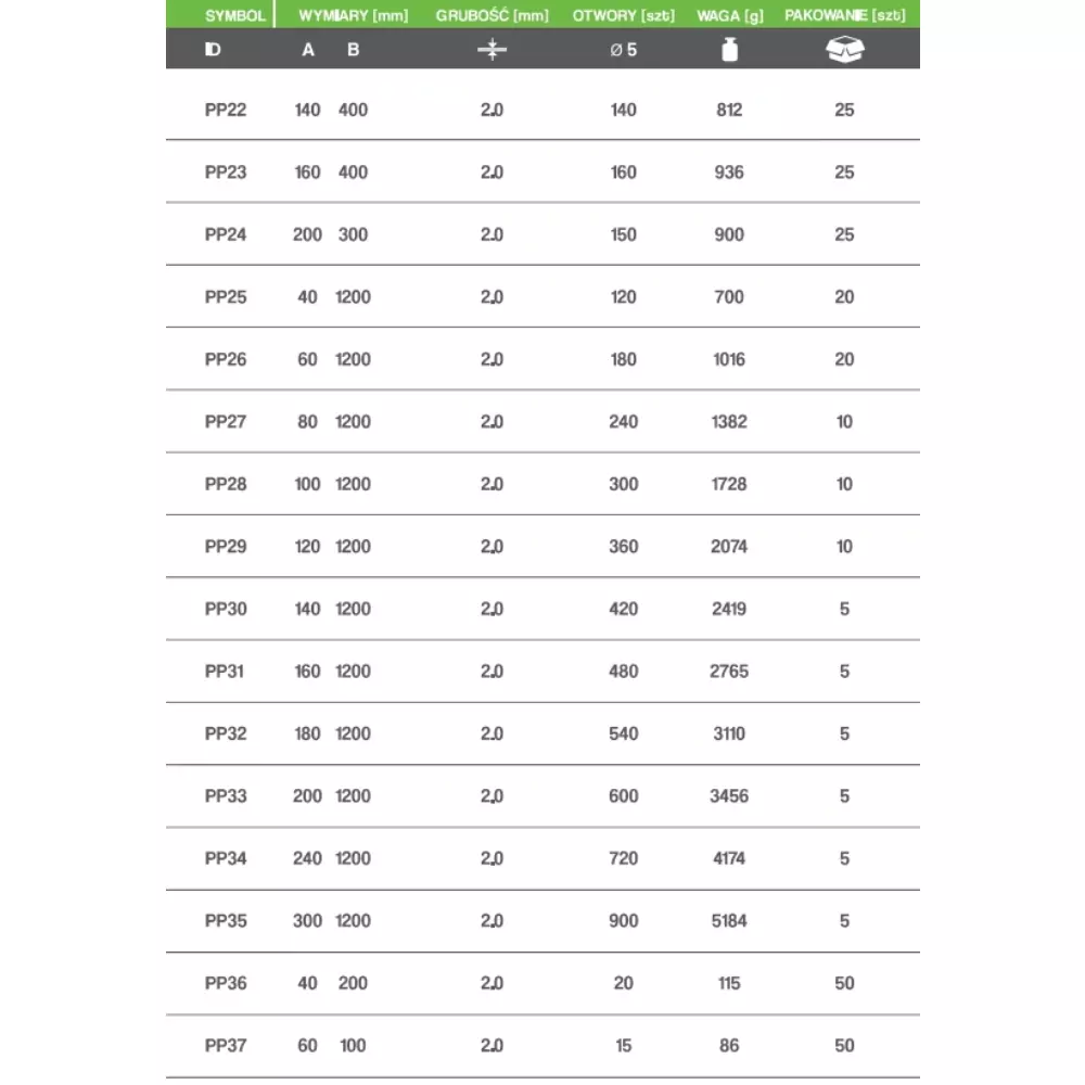 Zamów płytkę perforowaną płaskownik 40x120mm PP 25 już dziś i doświadcz wszystkich korzyści, jakie może przynieść Twoim projektom. Możesz polegać na wysokiej jakości wykonania i efektywności tego produktu, który spełni Twoje oczekiwania i pomoże w skutecznym łączeniu elementów konstrukcyjnych.