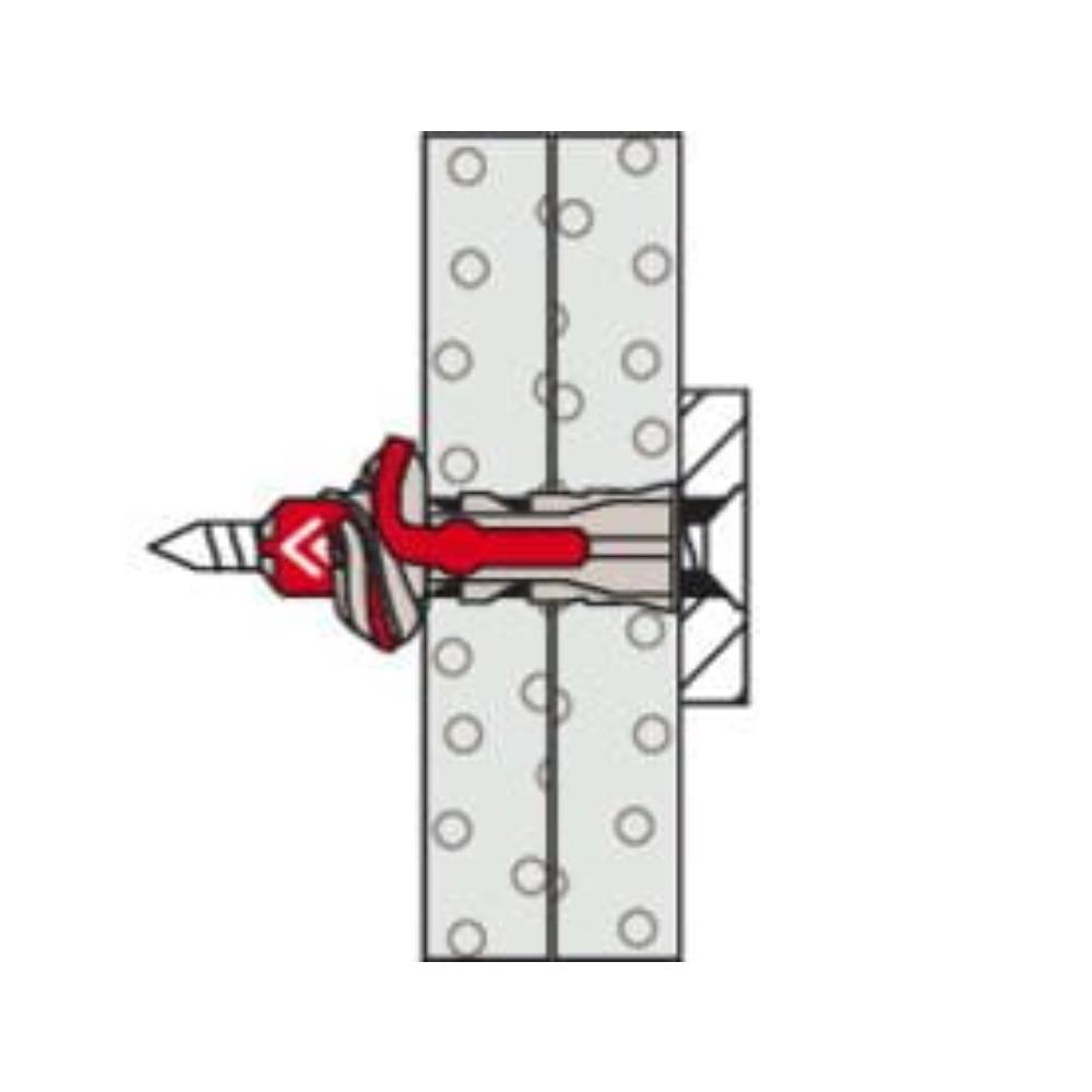 - Kombinacja dwóch różnych materiałów kołka wpływa na ich różnorodne właściwości (rozpieranie, składanie i zapętlanie), co umożliwia stosowanie w dodatkowych podłożach i uzyskiwanie w nich najwyższych nośności.