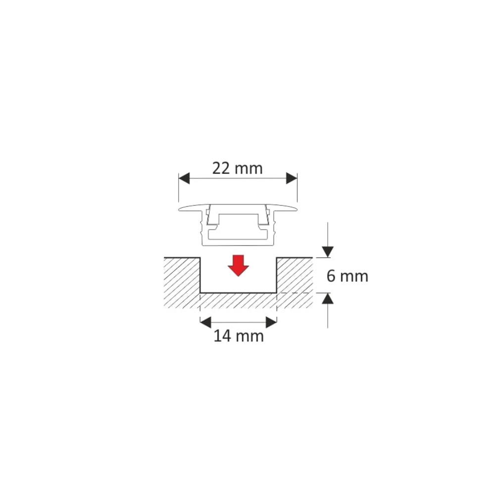 Inline Mini XL to profil do taśm LED o maksymalnej szerokości 10 mm. Profil jest wykonany z wysokiej jakości anodowanego aluminium i ma długość 2 metrów. Jest to produkt montowany do wpustu, czyli do odpowiednio wykonanego otworu lub frezu w powierzchni montażowej, np. w płycie meblowej. Głębokość otworu montażowego to 6x14mm + długość całkowita wybranego odcinka profilu.