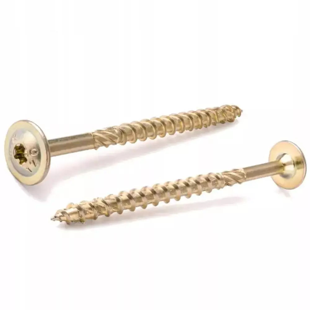 - Karby tnące – Specjalne karby tnące na gwincie przecinają włókna struktury drewna podczas wkręcania.