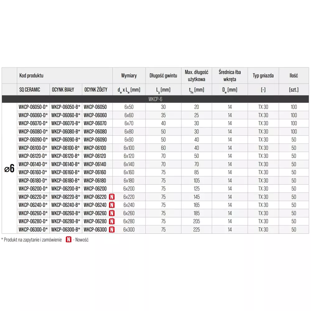 Wkręt ciesielski do drewna 6x120 łeb talerzowy TORX WKCP-06120 1szt