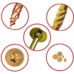 | - | Specjalne karby tnące na gwincie przecinają włókna struktury drewna podczas wkręcania. |
