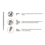 - Podwójne uzwojenie gwintu w części wkręcanej w podłoże powoduje doskonałe wyprowadzenie wkręta i odpowiednie odprowadzenie urobku