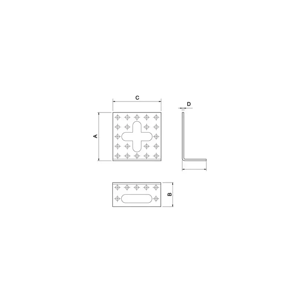 Kątownik nastawny – trójwymiarowa płytka do gwoździowania przeznaczona do wykonywania złączy ciesielskich z możliwością regulacji połączenia, umożliwia eliminacje naprężeń dylatacyjnych.