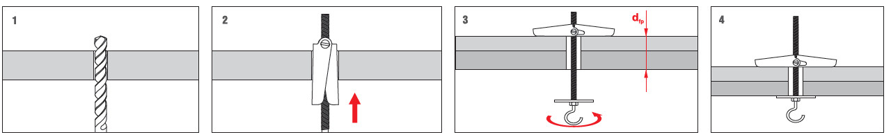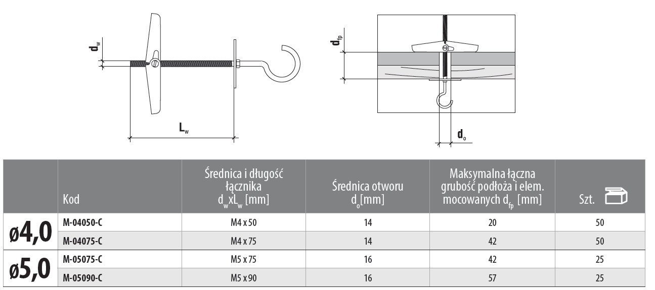 Konstrukcja kotwy – ramiona zapewniaja dużą powierzchnię docisku, co gwarantuje dużą wytrzymałość i wysokie bezpieczeństwo połaczenia