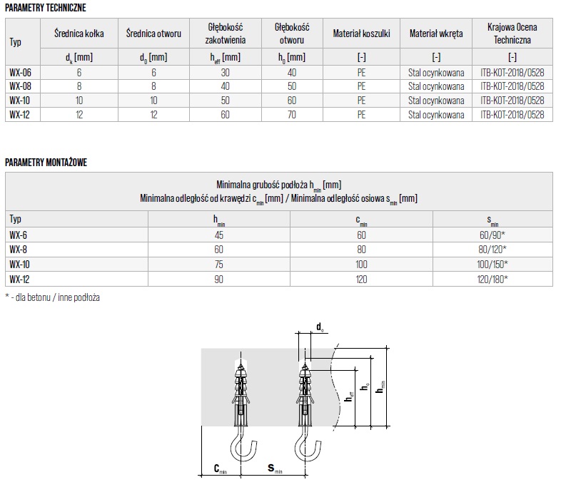Kołek rozporowy do podłoży pełnych z wkrętem z hakiem półpełnym