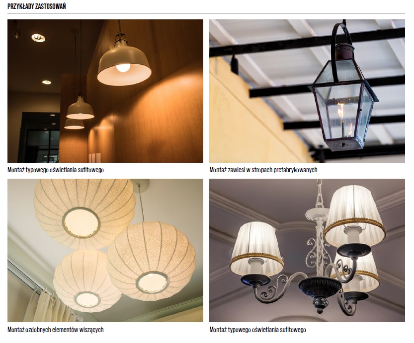 - Mocowanie typowych elementów dekoracyjnych sufitowych