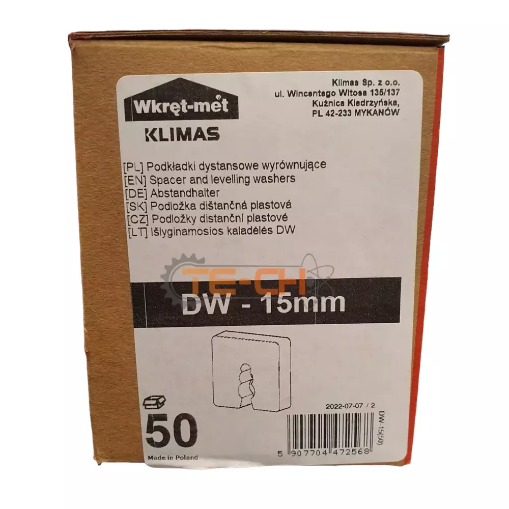 DW-15 50szt Podkładki dystansowe 50×50 białe 15mm