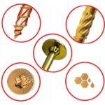 - PODWÓJNY GWINT – Dodatkowe zwoje na szpicu ułatwiają wkręcenie- pozwalają na szybsze ,,złapanie” drewna przy mniejszej sile docisku.