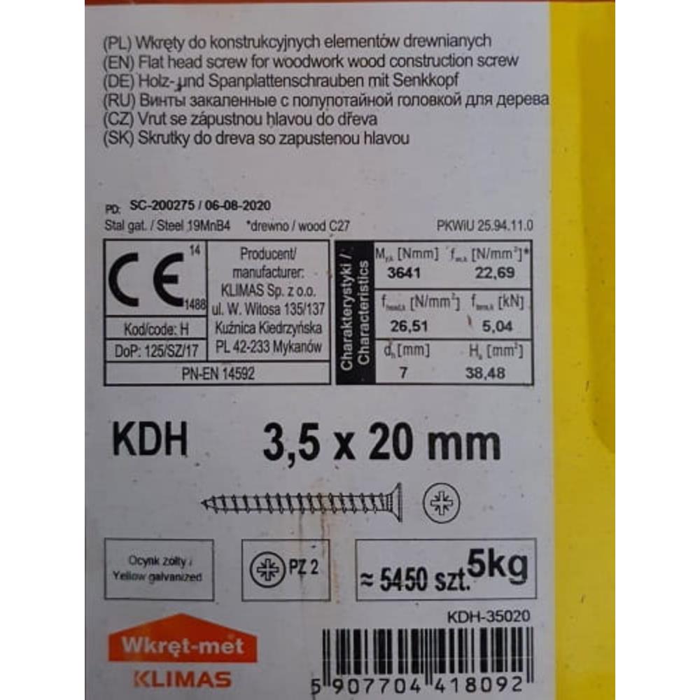 Wkręty hartowane do drewna 3,5×20 ZŁOTE 5kg KDH-35020 ok5450szt