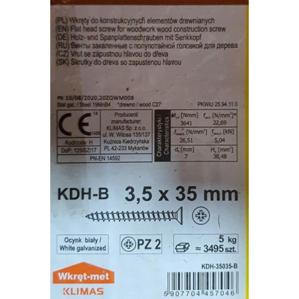 Wkręty hartowane do drewna 3,5×35 ZŁOTE 5kg KDH-35035 ok3495szt
