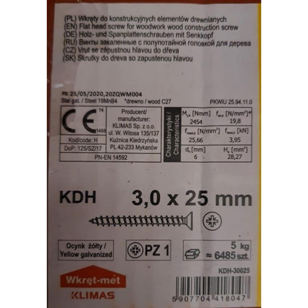 Wkręty hartowane do drewna 3×25 ZŁOTE 5kg KDH-30025 ok 6485szt